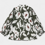 Filomena Blusa con Media Botonadura y Manga Abullonada en Estampado Floral Abstracto