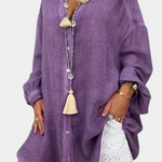 La Camisa Oversized Melis es la adición perfecta a tu guardarropa de verano. Hecha de algodón ligero, también puede usarse como vestido de playa y cubre traje de baño. Su corte holgado es cómodo y elegante, lo que la convierte en la elección ideal para un día en la playa. Mantente fresco y elegante con la Camisa Oversized Melis.