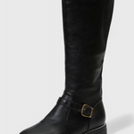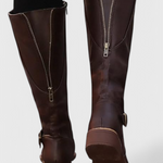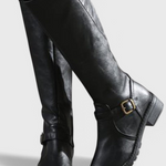 - Diseño elegante de bota de montar con un acento de hebilla refinada