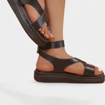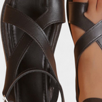 - Tiras amplias cruzadas que envuelven el pie con seguridad y estilo