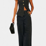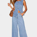 Ludovica Conjunto de Denim con Chaleco Ajustado y Jeans de Pierna Ancha