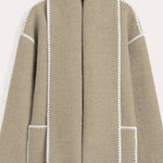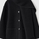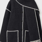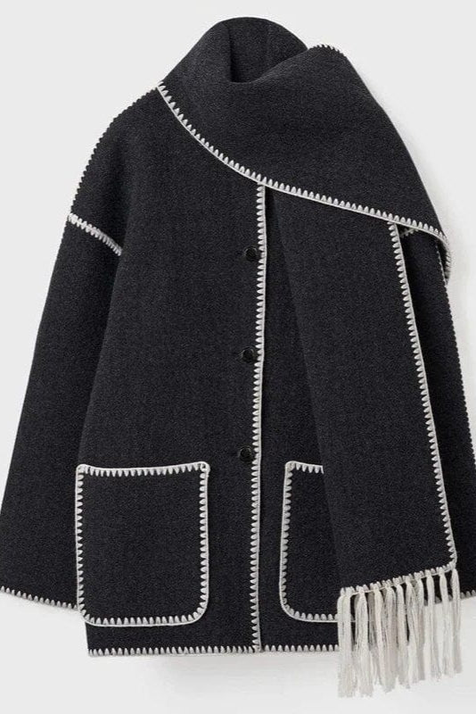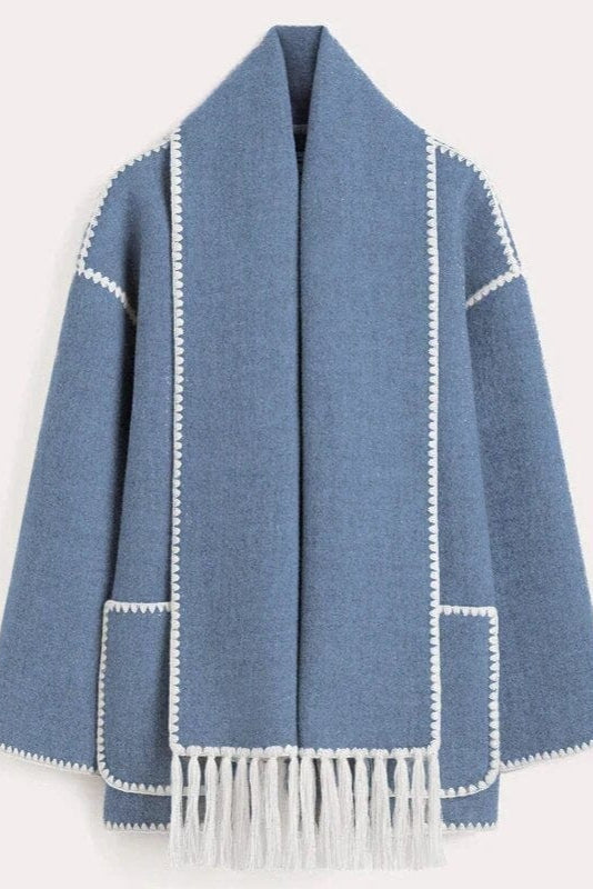 - Bufanda de flecos incorporada para mayor calidez e interés visual