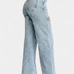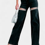 Evian Jeans Ripped Straight-Leg con Rhinestones