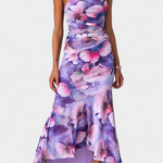 El vestido Abigail en malla floral combina sensualidad y elegancia. Presenta una silueta ceñida, una única manga asimétrica y detalle de correa ajustable en la espalda. La malla elástica aporta textura y realza la figura con un acabado sofisticado hasta el tobillo.