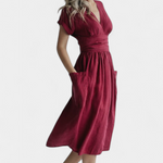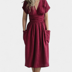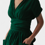 Cressida Vestido de Algodón con Escote en V y Cintura Ajustable