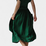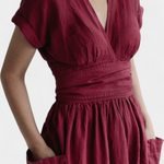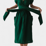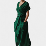 El vestido Cressida es una declaración de sencillez sofisticada. Su escote en V, mangas suaves y falda de corte A envuelven con ligereza, mientras el cinturón largo se adapta a tu figura para un ajuste perfecto. Con bolsillos amplios y una caída relajada, esta prenda equilibra comodidad y presencia con un aire orgánico y atemporal.