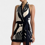 Fae Vestido Corto Halter con Estampado Abstracto y Cinturón