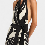 Frescura gráfica con un espíritu moderno y audaz. El vestido Fae juega con contrastes en blanco y negro y un diseño halter que resalta los hombros y estiliza la silueta. Su cinturón ajustable y tejido ligero lo convierten en una opción versátil y favorecedora para destacar con facilidad.