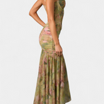 Una pieza de impacto que combina técnica, sensualidad y sofisticación en una silueta que realza cada curva con maestría. El vestido Isamar está confeccionado en malla floral de doble capa con un delicado estampado difuso, y destaca por su escote corazón estructurado, tirantes combinados y una falda tipo pañuelo con abertura que añade movimiento y carácter.