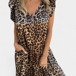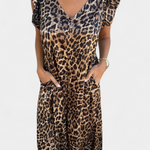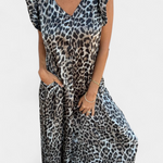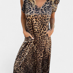 • Detalles: Estampado de leopardo, escote en V, bolsillos frontales