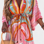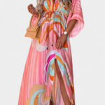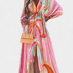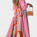 Joelle es una oda al color y la libertad. Con su estampado arcoíris vibrante, escote en V y mangas murciélago, este vestido maxi fluye con gracia y comodidad. Su silueta holgada lo convierte en la elección perfecta para vacaciones, días soleados y momentos donde quieras brillar sin esfuerzo.