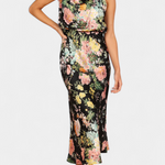 Lisa Vestido Maxi Floral con Cuello Halter y Cintura Elástica