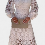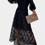 Lucinda Vestido Midi de Encaje con Mangas Farol y Cuello Alto