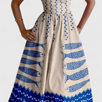 Divertido, fresco y con un toque retro—Maricela es el vestido perfecto para destacar en los días soleados. Con su corte ligero y estampado original de sardinas, combina encanto vintage con comodidad moderna.