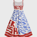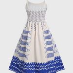 Maricela Vestido Vintage con Tirantes y Estampado de Sardinas
