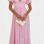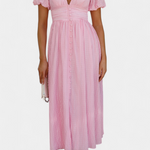 Mélia Vestido Maxi con Escote en V y Mangas Abullonadas