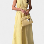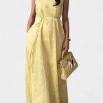 Frescura natural y elegancia sencilla definen al vestido Rosetta. Con una caída ligera y un diseño sin mangas con cuello redondo, este vestido tipo A ofrece un ajuste cómodo y favorecedor. El lazo fino en la cintura añade un toque sutil y relajado, ideal para los días cálidos y la sencillez con estilo.
