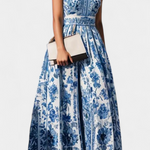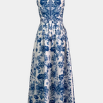 El vestido Shante celebra la elegancia clásica con un aire relajado y moderno. Su silueta A-line sin mangas, el estampado floral tipo porcelana y el detalle de solapa crean una pieza que fluye con gracia y deja una impresión refinada. Perfecto para días de primavera, escapadas o paseos entre flores.