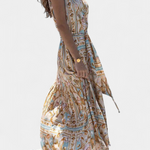 Teófila Vestido Largo con Estampado de Tesoros del Océano